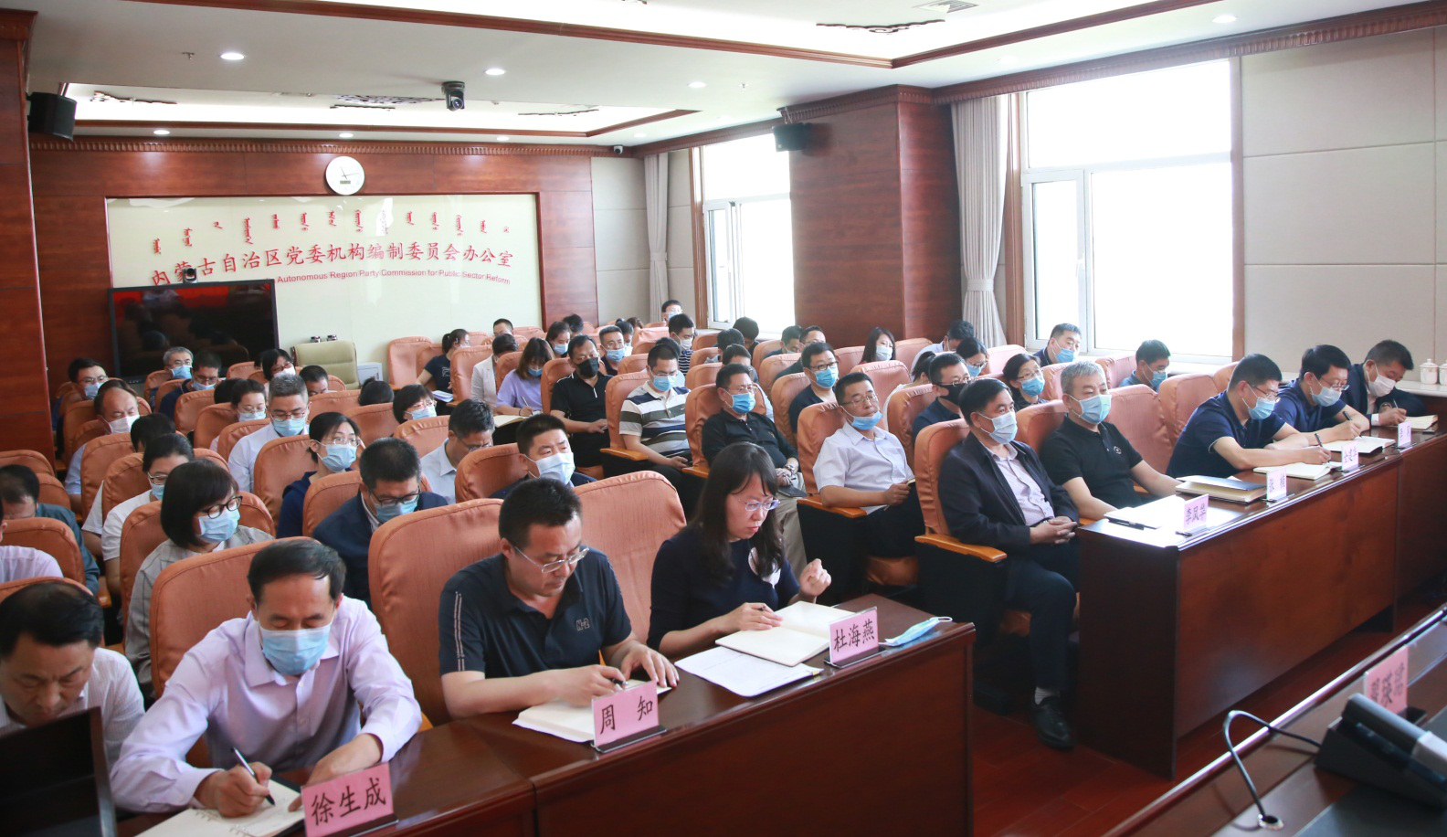 5月22日,自治区党委编办召开全办干部职工大会,就干部调整、晋级和定岗等工作统一思想、鼓舞干劲、推动落实。刘玉华主任主持会议并讲话。